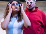 Gunderson uses two actors to play Emilie and writer Voltaire who was her mentor, companion and lover, and then three actors to play everyone else, from Emilie’s mother, husband and daughter, to servants and mathematician Sir Isaac Newton and poet Jean-Francois de Saint-Lambert. As they do not change their costumes, we are never entirely certain who they are when they reappear. Throughout the play Emilie is working on the physics formula F=mv2 (known as force vive) which she attributes to German mathematician and thinker Gottfried Wilhelm Leibniz. Unfortunately, this math will be foreign to most theatergoers who have not studied physics. Emilie narrates and addresses the audience, then turns back and interacts with the other characters on stage. She also keeps score in chalk on the walls as whether Love or Philosophy is in the ascendance. The play, cast as a flashback, has very short scenes so that a great deal passes in a short time. While the first act seems to be bits and pieces, the second act settles down into a more dramatic confrontation between Emilie and Voltaire and becomes more involving. MacGowan never finds the right tone to accomplish all of this.