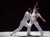 The twisty, but clichéd, choreography was not without its clever and eye-catching moments, but try as he might Ramírez Sansano never fully defined the characters, hindered by the equally colorless setting and costumes. The only variation on the relentless white of the ever-morphing pile of white bits and pieces that made up the set were several black-gray-white drops which divided the space and punctuated the action. The painting had clear references to Picasso’s masterpiece, "Guérnica." [more]