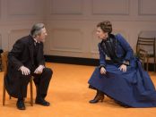 As the elderly king of Britain who deludedly decides to give up his kingdom to his three daughters, Goneril and Regan, the two older married ones, and Cordelia, his younger unmarried daughter, in exchange for their regaling him before his court with how much they love him, the 83-year-old Jackson dressed in Ann Roth’s fitted tuxedo and with a severe masculine haircut would seem believable casting. However in the first half of the evening (Acts I-III) which take about two hours, Jackson is nothing but haughty, sarcastic and arrogant, with little or no variety. In the production’s second half when the king who has been turned out of the castles of both married daughters (Cordelia having left the country to marry the King of France), Jackson seems mad but wise and more compassionate, turning the king’s anger on himself, but it is too little, too late. [more]