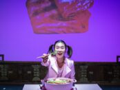 The host company, WHITE WAVE Young Soon Kim Dance Company ended the short, well-run program with the longest work, the three-part “Eternal NOW.” It also had the most complex costumes, geometrically shaped and brightly-colored two-part outfits designed by Sarah Cubbage. Putting her seven dancers through their modern dance paces, Kim displayed skill at handling the cast, pitting soloist against groups and each other as they moved to an alternately slow and fast score by Marco Cappelli. She is someone the other other dancemakers on this lineup could look up to. [more]