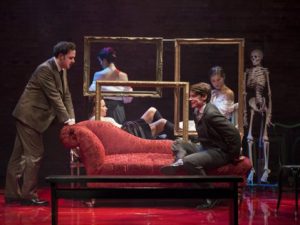 Director Albert Schultz’s program note explains that the production set itself two challenges: first, that Philip Carey would never leave the 16-foot red square center stage, and that all of the sound (vocal, musical or atmospheric) would be made by the 11 other actors in view of the audience. This may have made for an interesting artistic experiment, but it is not so effective for the audience. While the 16-foot square makes the play claustrophobic (a metaphor for Philip’s life), it also means that scenery has to be carted around for each and every scene. Nevertheless, in Lorenzo Savoini’s clever set design, the transitions between the many scenes are smooth and flowing. The sound effects are made by the actors on stage ultimately become very distracting from the action of the play. Faithful to the novel but necessarily telescoped, Thiessen’s adaptation is fragmented into a series of vignettes which though not disjointed suggest that much is missing. [more] -