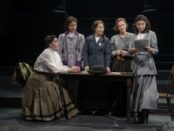 The transfer to Broadway has brilliantly expanded the show.  The new production designed by Riccardo Hernández (scenery), Paul Tazewell (costumes), Lap Chi Chu (lighting) and Charles G. LaPointe (wigs & hair) brings Taub’s script to vivid life, much better than the more didactic and spare Public Theater rendering.  These artists put Taub’s script into historical context making the battle all the more vibrant. The new version also has rethought the casting, reshuffled and improved the songs and, more importantly, is more focused and effective in telling about the conflicts—internal and external—that plagued the suffrage movement.  These included dissonance between Catt and Paul; the thorn-in-the-movement’s side of the Black contingent led by the brilliant Ida B. Wells (a charismatic Nikki M. James); and the far left, Socialist ideals of the hothead Ruza Wenclawska (Kim Blanck, brilliantly avoiding caricature). [more]