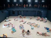 Performed by a cast of 15 singers and enacted in pantomime by numerous local volunteers all dressed in swimwear, Sun & Sea is a typical day at the beach in which we hear the thoughts of the singers, some of whom worry about the state of the world while others are entirely oblivious to it. Not only is it opera lite and a great deal of fun without being funny, it is also a very subversive way to communicate a message on as serious a subject as climate change. While the singers communicate their thoughts, the beachgoers frolic and enjoy their day oblivious to us but not to each other. The cast is a cross-section of all ages and races, including young children and two well behaved dogs – but no vendors. The totally realistic action (aside from the singing) includes reading, texting, eating, chatting, drinking, walking, cuddling, tanning, playing ball or games, while the children dig in the sand and build sandcastles. Some sit on beach chairs or chaise lounges while most lie on blankets on the sand or stand. [more]