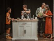 “Don’t step on the sand,” cautions the usher as she hands out programs and directs patrons to the their seats at The Gym at Judson. Indeed, the stage and floor is filled with sand that’s been artfully arranged into a barren vista of mounds and dunes. There is a concrete staircase leading to the roof of a small structure. Above is a rectangular screen where later images of the sky and a forest are projected. There is a concrete block with a pole in it on stage. Unfortunately Raul Abrego’s impressive set is the most outstanding feature of playwright Daniel Talbott’s cryptically titled and exasperating 90-minute War Is Hell fantasia, "Afghanistan, Zimbabwe, America, Kuwait. "