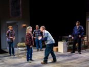 In a departure for him, the three actresses play all of the characters, both female and male, and are listed in the program simply as 1, 2 and 3. While the play feels undramatic and has no high points it does put the entire 67 years of the life of its heroine Charlotte (Charley) McBride played by Falco center stage. This low-key form seems to be the point for Stephens: life is a series of moments, like beads on a string, rather than big explosions or confrontations. With Brown playing her mother Claudette and Marin playing her daughter Tessa, both actresses also take turns narrating and playing other people in Charley’s life: her father Harold, her best friend Casey, her lover Brian, her husband Edward, her Uncle Stanley. Not only is the drama low-key, the characters play ordinary people, a saleswoman at Macy’s, a receptionist at St. Vincent, a janitor at the YMCA, the sort of people one had met or can identify with, unpretentious and unassuming: what most of the world is made up of.