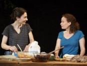 Rachel Hauck’s scenic design is the most outstanding feature of the interminable "Antlia Pneumatica." Ms. Hauck accurately and vividly represents the Texas ranch setting by an elaborate kitchen counter top in the center of the bare stage that is surrounded by shrubbery. It’s very functional as much of the activities involve preparing a feast. [more]