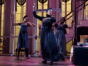 There is no plot, just a series of verbal jousts played out on Riccardo Hernandez’ sleek, two-tier set with just the image of trees looming over the actors wearing Montana Blanco’s colorfully exaggerated costumes. From the childlike Prunes and Prisms of Ms. Sithole to the angrily twisted Bigger (a reference to Richard Wright) of Mr. Piniella, the actors recite the difficult lines, goaded to do their finest by director Lileana Blain-Cruz who totally understands the work. [more]