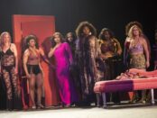 The second premiere was a battle of the sexes duet, “Me, Myself and You,” choreographed by Elizabeth Roxas-Dobrish to a Duke Ellington song, “In a Sentimental Mood” sung lustrously by Brandie Sutton. Caroline T. Dartey, in a long, silvery robe (costumes by Danté Baylor) rose from the floor and wandered beautifully towards a standing screen on the other side of the stage. Once unfolded, the screen was revealed to be a three-part mirror which seemed to fascinate Dartey as she almost made love to her own image. [more]