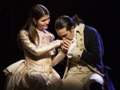 The Broadway transfer of the acclaimed Off Broadway musical "Hamilton" has finally taken place and the show looks and sounds even more comfortable on the larger stage of the Richard Rodgers Theatre. Alexander Hamilton may have been the unsung hero among the Founding Fathers of the American Revolution but this new musical has changed all that. "Hamilton," now safely ensconced on Broadway, blows the dust off history and turns his story into the most exciting stage show in town. Inspired by Ron Chernow’s biography, triple-threat creator Lin-Manuel Miranda, the composer, librettist and star of the show playing the title role, has had the terrific idea to write Hamilton as a through-composed hip-hop, r & b, rap musical which gives the 200-year-old story a tremendous shot of adrenalin. This may well be the first hip-hop musical to reach Broadway but also pays homage to the styles that preceded it. [more]