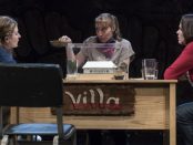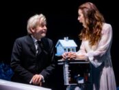 There is much rewriting and updating plus uncalled for interpolation like speeches from 'Romeo and Juliet" for Jessica and one of Shakespeare’s sonnets (“My Mistress’ eyes are nothing like the sun") as a rap for Lorenzo added to Act V, Scene 1. The play begins with T.R. Knight on mike as the host of “The Antonio Show” and then he sits behind a desk as the merchant of Venice, and interviews his friend Bassanio seated on a sofa as though this was The Tonight Show. With only eight actors, there are not enough to play all of the parts despite doubling, so that Antonio uses two red hand puppets to stand in for his colleagues Salarino and Salanio. [more]