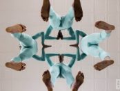 [esc], staged by Penn & Teller, Mr. Barnett, Ms. Jaworski and Mr. Kent, is a Penn & Teller homage to Harry Houdini. To a musical background of pop songs, the performers—Messrs. Fitzgerald Ahern, Banks-Sullivan, Coalter & Loman and Mlles Krystal Butler & Jordon Kriston—were variously locked in an “escape-proof” box (assembled by two audience volunteers), squeezed into a carry-on bag, handcuffed to a 13-foot pole and duct-taped to a chair. Their escapes, accompanied by Penn’s humorous narration were exciting, energetically performed, but, in the last analysis, a bit long-winded. [more]