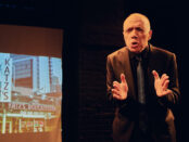 Sigourney Weaver, who acted in Gurney’s plays Mrs. Farnsworth and Crazy Mary, periodically appeared onstage with her husband Jim Simpson. Mr. Simpson was the former Artistic Director of The Flea Theater which presented 15 of Gurney’s works. Throughout the celebration the couple reminisced about the writer and recited biographical details about him, while illustrative slides depicting his life were projected. At the conclusion of this portion, in white lettering on a black background, were projected the titles of Gurney’s 48 plays. It was a stark testament to his achievements. [more]