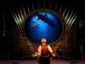 The live action elements of the show are performed on various platforms and screens on which are projected Deco Dawson’s designs which give the dramatization a 3-D look. In addition to 2 -D minatures, Miller manipulates tiny action figures (the scientists, etc.) and puppets (the Giant Squid, etc.) which are projected life size. Other moments take place in the audience. The audience is also asked to put their smart phones on mute to await developments. Among the magical moments are the walk on the bottom of the sea and the school of jelly fish. Aside from the marvelous visuals, the creators seem to want to have it both ways: although we are transported to a Victorian world, smart phones and computer monitors seem to work – although the younger members of the audience will most likely not notice the anachronisms. [more]
