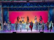 Visually, the show is not as effective as it might have been considering the play usually includes a great deal of magic. Here there is very little in the way of scenic illusions or legerdemain. Alexis Distler’s setting which makes use of some elements of the design for Hamlet, the previous staging on the Delacorte stage, a falling down mansion seemingly off its foundation, adds little to the production’s visuals. Except for the stunning harpy costume for Ariel by Wilberth Gonzalez, the rest of the designs are more than bland. The all-black leather creations for the Europeans give the production a contemporary look that feels out of place. The dozens of community partners dressed in matching blue and yellow outfits have been given little to do besides stand around as witnesses or hum to the large-scale musical numbers. [more]