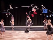 The choreography, mostly by Emily Smyth Vartanian, tends toward the musically unsophisticated, combining ballet (piqué turns, little jumps, attitude and arabesque poses), jazz (sassy turned in knees and jazz hands) and Latin American influences (hip waggles and shimmying shoulders) all punctuated with giant smiles and an appealing air of merriment. The dancers are steady and personable and jolly performing the steps joyfully. They all relate to each other—and the audience—beautifully. Costumes are colorful versions of dancewear and street clothes. [more]
